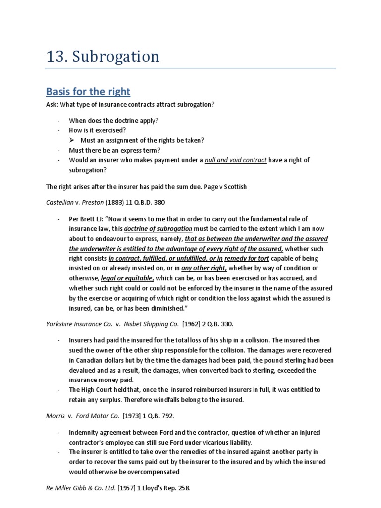What Is Subrogation Expert Commentary Irmi Com from www.irmi.com § 95.11 (3) (a) (1997). They must see the opportunity and escalate it. Claims examiners must put themselves in the shoes of the insured and think twice before they mark the claim as 'no subrogation'. It sometimes transpires between insurance companies. Ford motor company, 13 misc. 3d 1231(a), 2006 wl 3069287, at *1 (n.y. Subrogation typically happens behind the scenes between the insurance companies with little effort from you, but it's important to know your subrogation rights just in case something should go wrong. The subrogee alleged that the vehicle suffered a mechanical breakdown and failure.